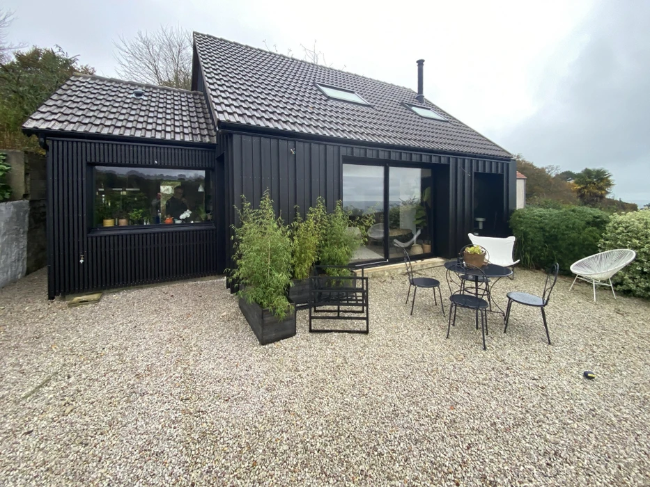 Finitions élégantes des avant-toits et bordures avec des matériaux coordonnés au bardage pour une harmonie architecturale aboutie.