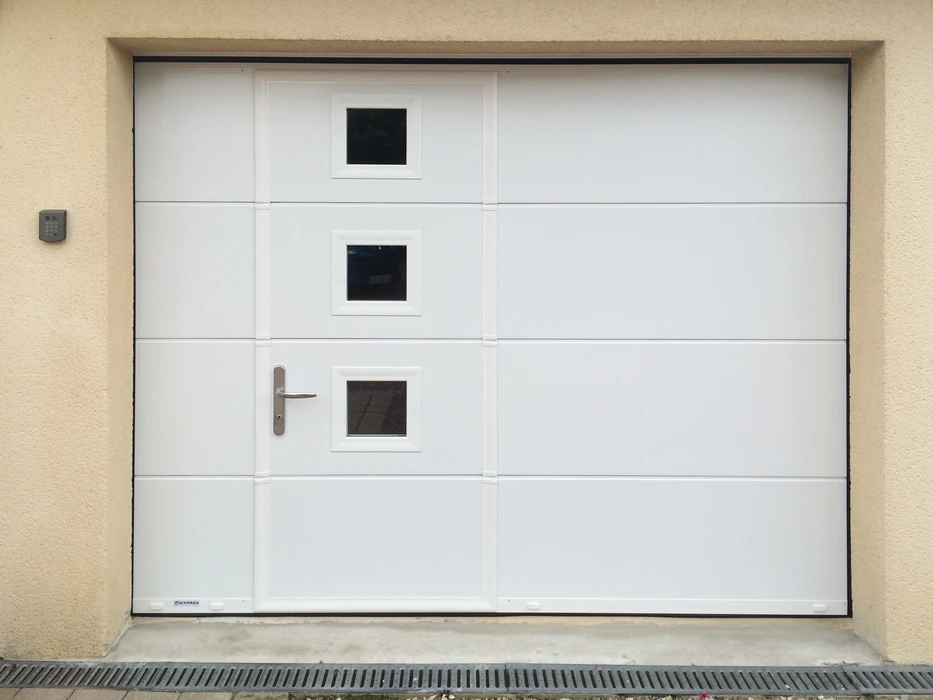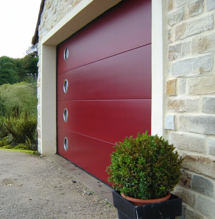 La porte sectionnelle offre plusieurs bénéfices majeurs : elle libère l'espace devant le garage, s'adapte parfaitement aux ouvertures irrégulières et présente d'excellentes propriétés isolantes. Son système de panneaux articulés permet une ouverture verticale fluide, adaptée aux garages à faible recul ou à configuration atypique.